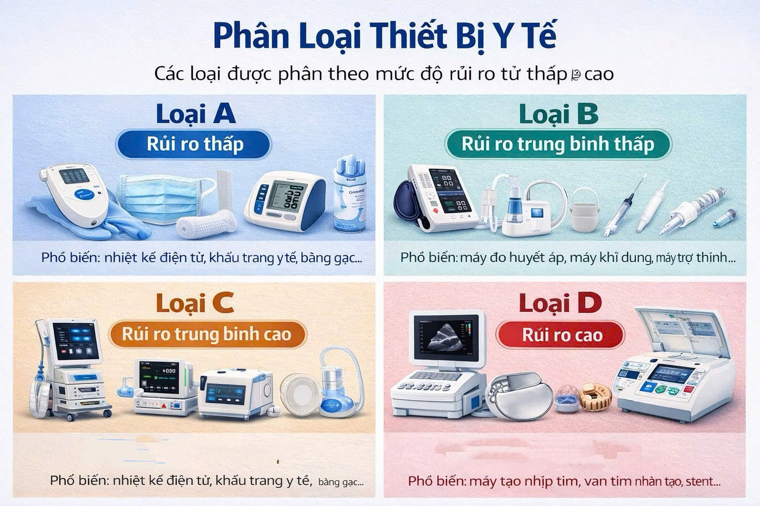 Thiết bị y tế được phân loại theo mức độ rủi ro từ thấp đến cao: